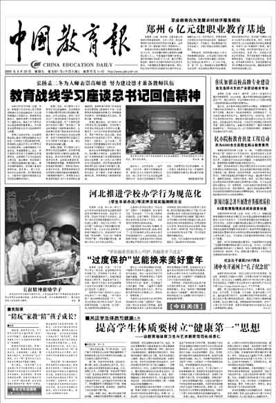 《中国教育报》是教育部主办的以教育新闻为主的全国性日报。它的宗旨是全面、准确、及时地宣传党和国家的教育方针、政策及工作部署,