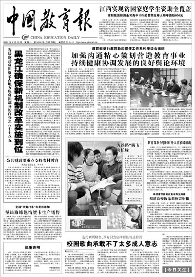 《中国教育报》是教育部主办的以教育新闻为主的全国性日报。它的宗旨是全面、准确、及时地宣传党和国家的教育方针、政策及工作部署,