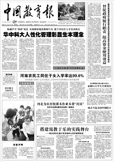 《中国教育报》是教育部主办的以教育新闻为主的全国性日报。它的宗旨是全面、准确、及时地宣传党和国家的教育方针、政策及工作部署,