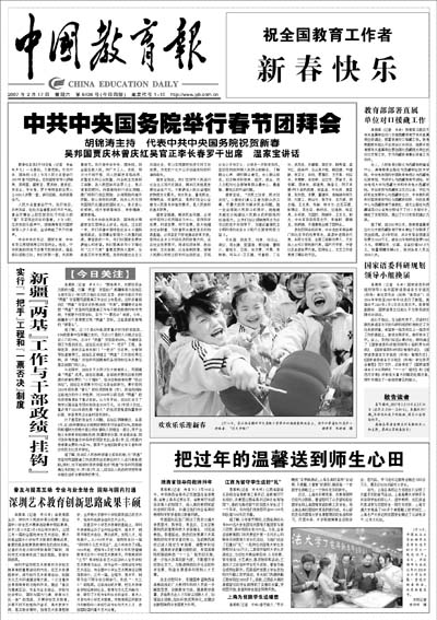 传播教育改革与发展的信息和经验。除要闻版外,还辟有高等教育、基础教育、职成教育、理论、国际教育等专刊,校长、读书、招生考试与就业等周刊。每周一、二、三、四、五对开八版。