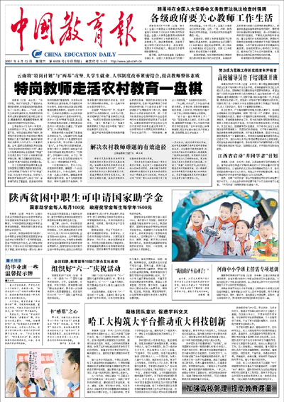 《中国教育报》是教育部主办的以教育新闻为主的全国性日报。它的宗旨是全面、准确、及时地宣传党和国家的教育方针、政策及工作部署,