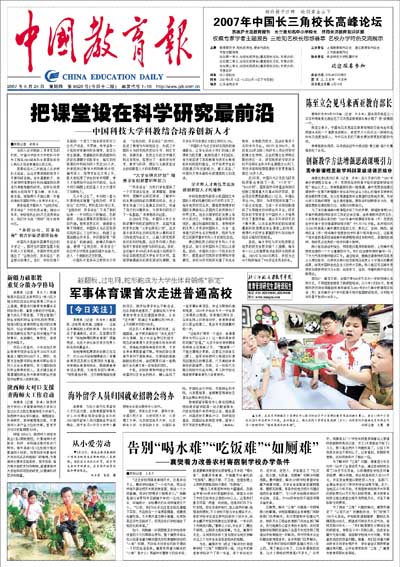 传播教育改革与发展的信息和经验。除要闻版外,还辟有高等教育、基础教育、职成教育、理论、国际教育等专刊,校长、读书、招生考试与就业等周刊。每周一、二、三、四、五对开八版。