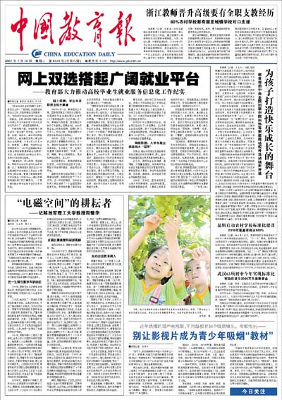 《中国教育报》是教育部主办的以教育新闻为主的全国性日报。它的宗旨是全面、准确、及时地宣传党和国家的教育方针、政策及工作部署,