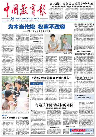 传播教育改革与发展的信息和经验。除要闻版外,还辟有高等教育、基础教育、职成教育、理论、国际教育等专刊,校长、读书、招生考试与就业等周刊。每周一、二、三、四、五对开八版。