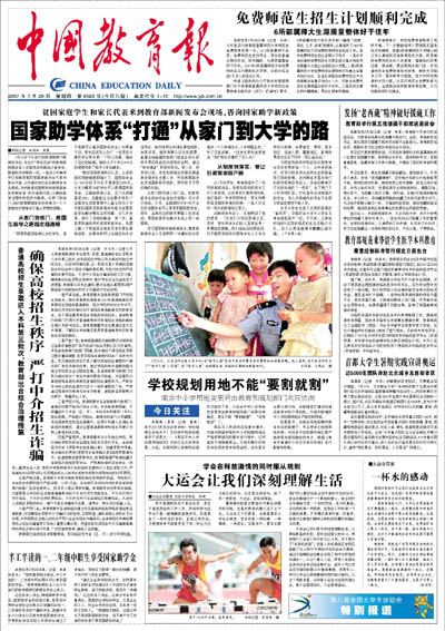 《中国教育报》是教育部主办的以教育新闻为主的全国性日报。它的宗旨是全面、准确、及时地宣传党和国家的教育方针、政策及工作部署,