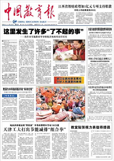 传播教育改革与发展的信息和经验。除要闻版外,还辟有高等教育、基础教育、职成教育、理论、国际教育等专刊,校长、读书、招生考试与就业等周刊。每周一、二、三、四、五对开八版。