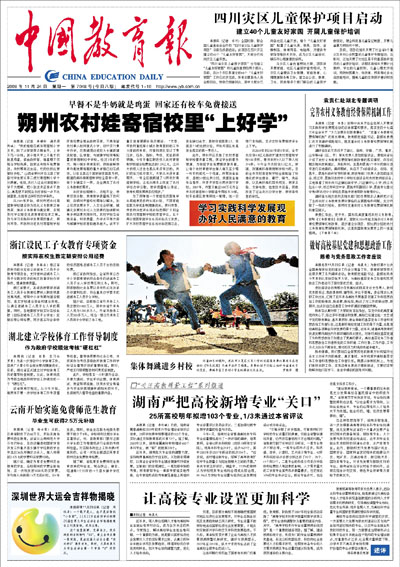 《中国教育报》是教育部主办的以教育新闻为主的全国性日报。它的宗旨是全面、准确、及时地宣传党和国家的教育方针、政策及工作部署,