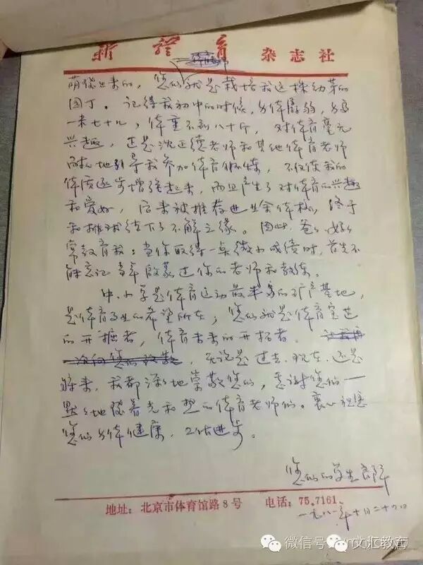 所以,她在信中特意感谢沈正德老师和其他体育老师,正是她们鼓励、引导她参加体育锻炼,才使得她开始对体育产生兴趣。