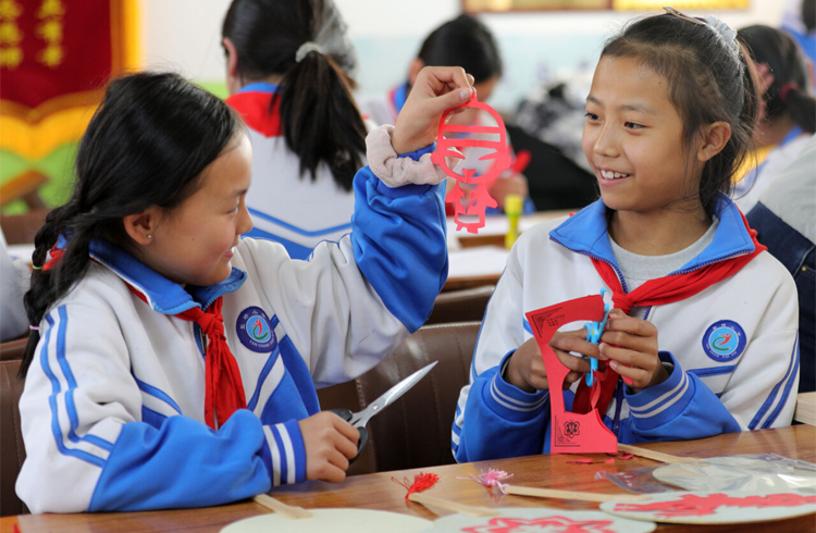 非遗剪纸进校园 11月17日,河北省唐山市非遗剪纸项目传承人在指导学生剪纸。20多年来,唐山市路北区韩城镇中门庄小学坚持开设非遗剪纸文化课,并聘请非遗传承人为学生授课,培养学生的动手能力,让学生们感受传统文化的魅力。