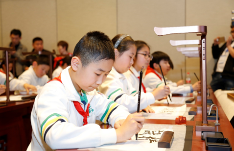 会上,北京天坛东里小学的老师和同学们使用“智云+”数字书法教室,使用传统的笔墨纸砚,结合信息化技术,通过示范、互动、讲评、临摹练习,为大家展示了一堂别开生面的书法课。