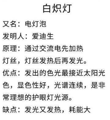③白炽灯:作为传统光源不够亮;眩光方面,白炽灯由于它灯泡比较大,因此一般也会比较刺眼 ; 色温方面较低,容易造成眼睛疲劳。