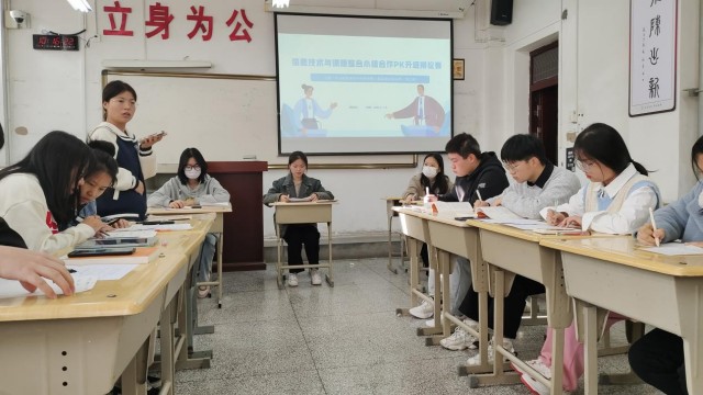 针对传统课堂存在的学生参与度低、创新能力培养不足问题,学院形成了“头雁领航,群雁齐飞”的良好态势。孟亚玲教授基于自身20余年的课堂教学和改革经验,自主研发建构了基于开放资源的小组合作竞争主题教学模式,融自主学习、小组合作学习、主题学习和竞争激励于一体,成功打破传统课堂的单向灌输模式,将课堂从“教师中心的知识传递场”转变为“师生交流的思想乐园”和激发学生潜能、培育创新能力的“肥沃土壤”。