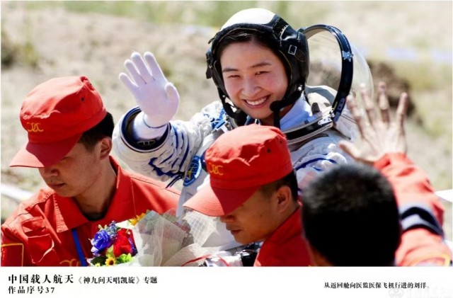 中国首位女航天员刘洋出仓时的场景,我从距离她40米以外的地方仰角抓拍到这一瞬间。刘洋的成功是中国航天史的里程碑,让世界看到了中国女性的风采!吴运生用图片+故事的形式,串联起东方红一号升空、神五载人飞天、嫦娥揽月、天问探火、空间站遨游苍穹等里程碑事件。当讲到神舟十一号航天员景海鹏、陈冬挑战极限完成任务的事迹时,现场响起经久不息的掌声,英雄精神引发学生强烈共鸣。