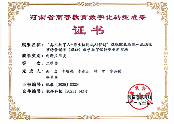 在资源支撑体系建设方面,学校积极推进虚拟教研室跨校协同教研,建成融合本土与国际化企业案例的课程资源库,为毕业论文指导提供丰富素材;深度产教融合,建立多家优秀校友企业实习基地,如好想你、夺冠集团等,为毕业论文的“真题真做”提供实践资源;开发“大美中原、老家河南”豫商品牌课程思政案例库,将中原文化融入双语课程教学,结合中原文化研学和红旅创新创业大赛,深化学生文化认同与家国情怀。谢启发表的《基于虚拟教研室跨校协同教研下高素质高校教师队伍建设探究》等教研论文,以及主持的“基于虚拟教研室的校级一流课程《市场营销学》建设研究”等校级重点教改项目,为教学改革提供了持续的资源保障与理论支撑。