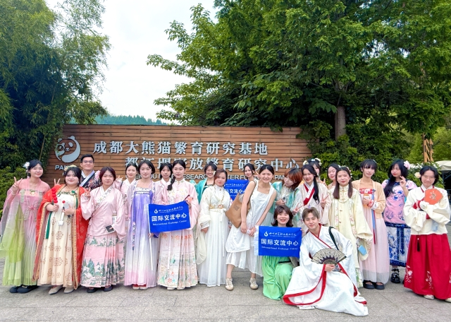 汉服遇熊猫,感受文化与自然交融。在都江堰熊猫谷,一场“汉服邂逅国宝”活动为他们即将结束的学业画上了圆满句号。留学生们在汉服社社员的帮助下,穿上“交领右衽、宽袖系带”的汉服,学习其背后的礼仪规范与哲学内涵。他们身着汉服穿行于翠竹幽径,近距离观察憨态可掬的国宝大熊猫,亲身感受人文传统与自然生态的完美交融,深化了对中国文化中“天人合一”智慧的理解。一位留学生动情地表示:“在熊猫家园穿上汉服,仿佛真正触摸到了中国文化的温度,这是在华学习一年结业前收到的最珍贵礼物。”