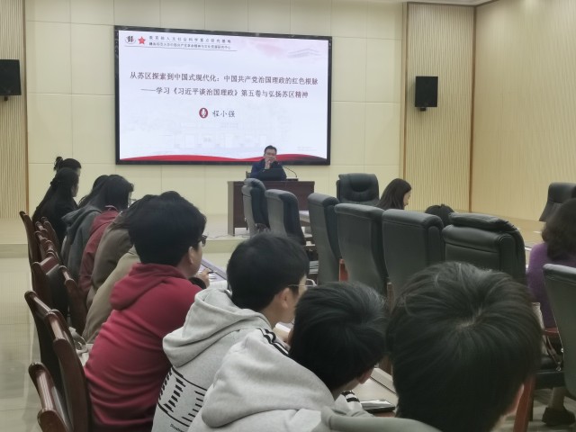 为深入挖掘苏区精神的历史经验和时代内涵,引导广大师生不忘初心、牢记使命,走好新时代的长征路,近日赣州职业技术学院中央苏区红色基因传承研究中心,特邀江西省“四个100”宣讲导师、赣南师范大学马克思主义学院副教授程小强,作“从苏区探索到中国式现代化:中国共产党治国理政的红色根脉”专题讲座。学校马克思主义学院全体教师及辅导员代表、学生代表共同聆听了本次讲座。
