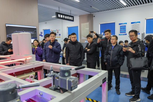 与会嘉宾还参观了西安铁路职业技术学院与中国铁路西安局集团有限公司共建共享工务机械段产教融合实训基地,体验了校企合作开发的自轮运转设备驾驶作业智能考培一体化系统、大型养路机械虚拟仿真实训室和钢轨探伤实训室。