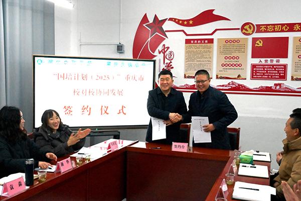 仪式现场,欧宾与袁重阳代表两校共同签署协同发展合作协议。据介绍,本次协同发展项目周期覆盖2025-2026学年度,集中研修不少于20天。未来,广益中学将依托智慧校园管理平台搭建线上资源共享渠道,通过名师结对帮扶、骨干教师送教、青年教师跟岗等多元形式,实现管理经验共享、教研活动共研、师资队伍共成长。同时,双方还将联合开展乡村教育课题研究,深挖盛山本土文化资源,共同构建具有地域特色的育人体系,推动城乡教育优质均衡发展。