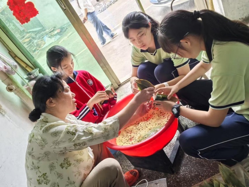 端午包粽子、绘龙舟、编彩绳,中秋做月饼、进社区给独居老人送月饼、收集“老人节日故事”,郴州六中将民俗劳动与志愿者实践活动相结合,让学生在劳动体验和送温暖活动中感受不一样的节日氛围。