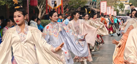 华美的汉服巡游接踵而至,演员们衣袂翩跹、舞步轻盈,带领学生“穿越”千年,邂逅大宋盛景;古色古香的市井街区里,古风快闪精彩上演,演员们华服加身、载歌载舞,学生则在沉浸式体验中触摸家乡历史文脉,感受传统人文情怀,加深对中华优秀传统文化的理解与热爱。