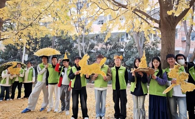 携手学校后勤管理部门,用落叶装扮美丽校园