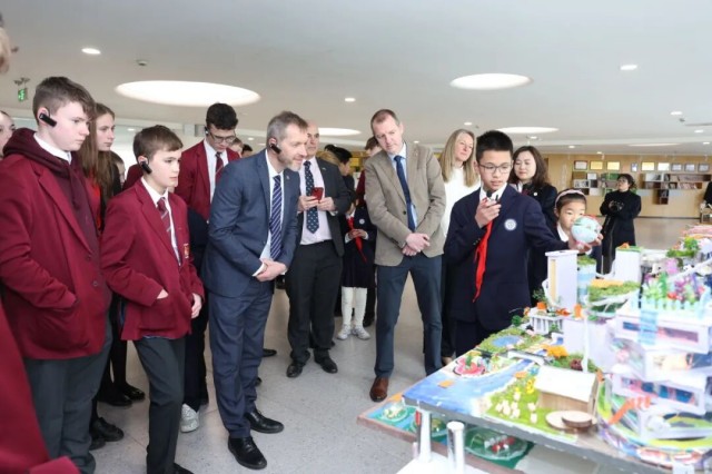 活动中,云芯学校“芯宝外交官”以中英双语带领英国奥斯汀公学代表团沉浸式探访校园。中学部的项目成果展、Mini音乐会、魔镜舞蹈体验,展示学子的科创素养与艺体风采;小学部的百草园、芯宝花园,藏着云芯特色的自然教育之美。