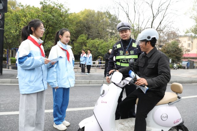 “叔叔,戴头盔的样子真帅!”“阿姨,红灯亮了,请等一下。”稚嫩却坚定的话语在路口回荡,学生们用真诚与热情感染着每一位市民。初二年级学生苗绘在活动结束后表示:“以前总觉得遵守交通规则是小事,今天站在这里才发现,每一个小小的举动都关系到生命安全。交警叔叔阿姨日复一日地坚守,真的非常不容易。”