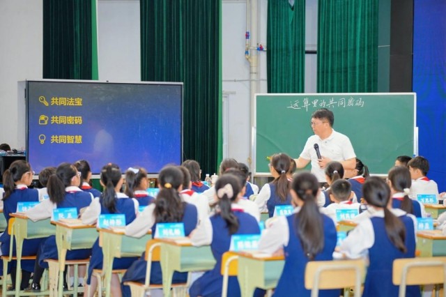 广州市越秀区东风东路小学数学教师、越秀区数学学科中心组组长耿梦浩,呈现五年级示范课《正方体表面涂色问题》,融合数智工具与空间想象,引导学生发现图形规律、发展几何直观与逻辑思维。数学特级教师、正高级教师、北京大学教育学院特聘专家黄爱华,执教六年级示范课《运算里的共同密码》,以计数单位为主线打通知识壁垒,让学生感悟运算本质的一致性。