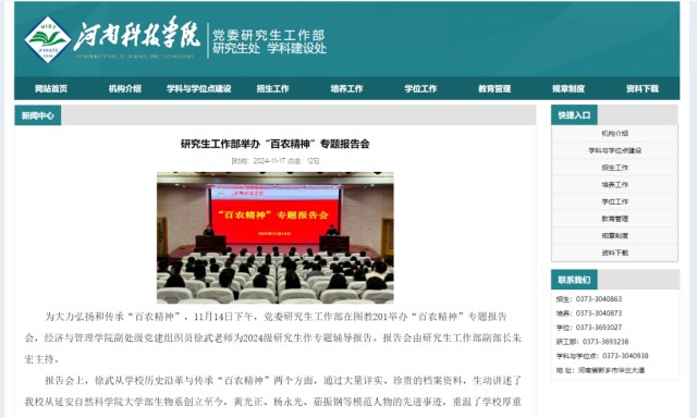 河南科技学院积极响应新时代国家专业学位研究生发展的战略重点,聚焦农业硕士专业学位论文质量提升,以分类培养为切入点,依托2023年河南省高等教育教学改革研究与实践(研究生教育)重点项目“农业硕士专业学位论文质量提升路径研究与实践”,创新性提出“两线三点三结合”综合提升策略。通过以创新评价标准为引领,以强化过程管控为支撑、以深化产教融合为动力,探索形成具有地方高校特色、农科院校特质、专业学位特点的论文质量提升体系,全面赋能农业硕士高层次应用型人才培养,为乡村振兴与农业强国建设提供坚实支撑。