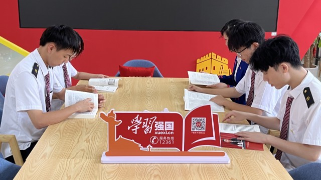 学生在学习强国小站学习阅读党的理论知识
