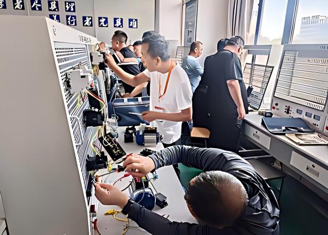 《电工技能》培训班学员在电气楼电器实验室实操练习