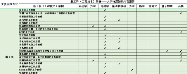 新工科(工程技术)案例—电子类大学物理知识内容矩阵
