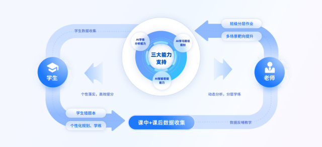 基于这一理念,“九章爱学”依托好未来20余年的教育大数据沉淀与自研“九章大模型”,打破应用壁垒,打造覆盖课前、课中、课后全流程的智慧教育基建,助力学校构建“备、教、练、测、评”的数字化闭环生态,推动AI融入教育教学的全过程,全面践行国家教育数字化战略。