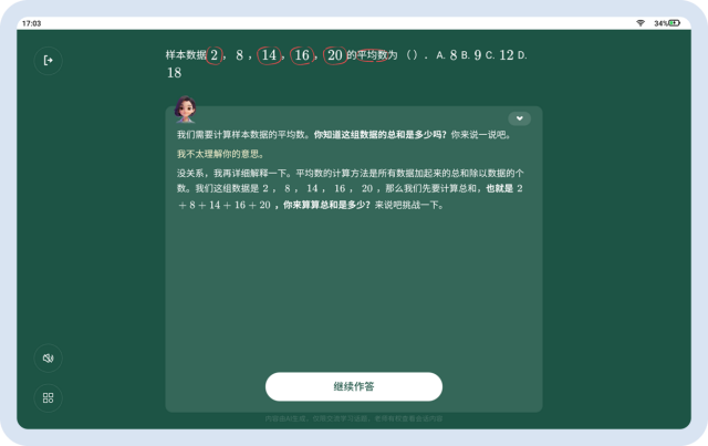 在学生端,“九章爱学”同样秉持“激发思考与提问”的理念。展台体验区,当参观者向屏幕里的AI教师求助时,AI教师没有直接抛出答案,而是采用了苏格拉底式的讲题法,通过步步引导,让体验者自己推导出正确答案。
