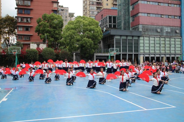 随后的文艺表演紧扣主题,各年级80—100人表演队伍依次登场:四年级挥舞彩扇演绎《踏山河》,壮志豪情;二年级化身海底小精灵,灵动可爱;三年级踏浪起舞,逐光成长;六年级带来《奔跑的青春》,燃动全场;五年级以《Zoo》展现童真活力;一年级萌娃献上《健康到到令》。学生们用阳光自信的姿态,完美诠释“奔跑耀未来”的青春力量,赢得全场阵阵喝彩。