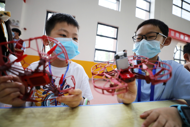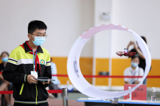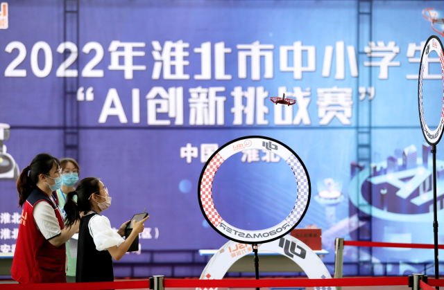 5月28日至29日,安徽省淮北市举办中小学生“竞逐” 人工智能创新挑战赛。该赛程设小学组、初中组两个组别,共设置“AI无人机穿越挑战赛”“智能无人驾驶”“智慧医院”等6个比赛项目,全市中小学20支代表队160余名青少年现场进行电脑编程,操控无人机和机器人进行穿越障碍和模拟任务操控。李鑫 摄