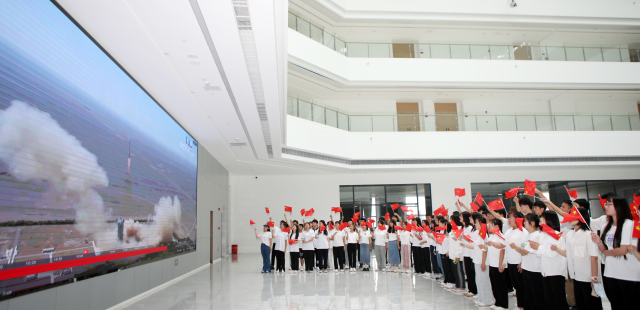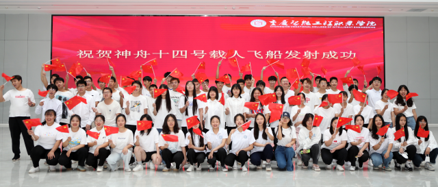 6月5日,位于重庆市永川区的重庆智能工程职业学院科技大楼电子显示屏前,师生们聚在一起认真观看神舟十四号载人飞船发射。发射取得圆满成功后,师生们兴奋地挥舞着国旗,齐声高唱国歌,预祝神舟十四号航天员乘组圆满完成任务胜利凯旋。致敬中国航天人,点赞中国航天!陈仕川 摄
