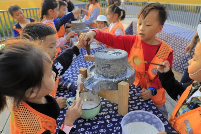 孩子们学习制作米浆 练益华 摄