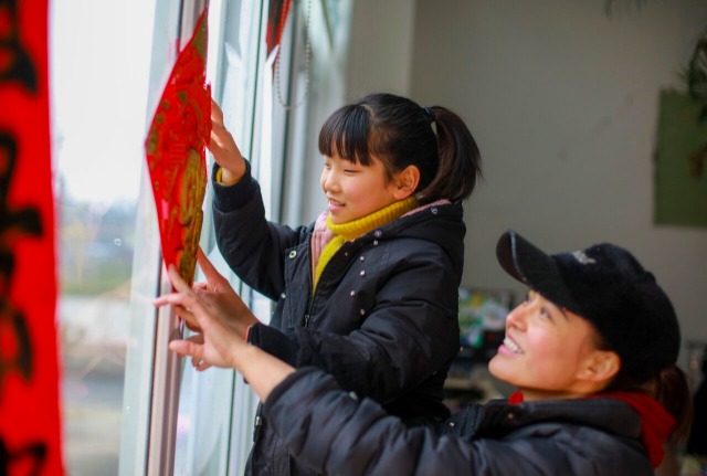 贴春联、包饺子,共同迎接新春佳节。周训超 摄