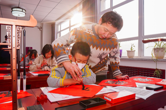 为了丰富学生寒假的文化生活,营造和谐、欢乐的春节氛围。1月16日,新疆昌吉市第三小学组织开展“迎春送福”师生写春联送祝福活动,弘扬传统文化,共迎新春佳节。(中国教育报-中国教育新闻网 通讯员 杨斌 摄)