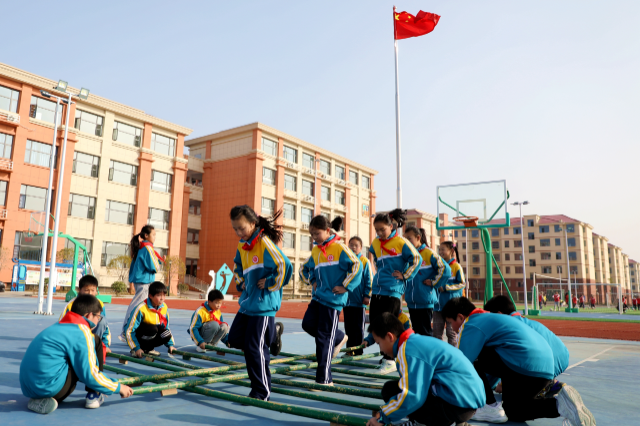 孩子们正在跳竹竿舞。通讯员 陈旗海 摄