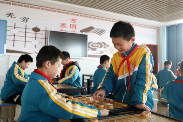 孩子们正在进行象棋博弈。通讯员 陈旗海 摄