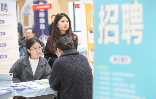 求职学生在向用人单位咨询了解就业信息。王树成 摄