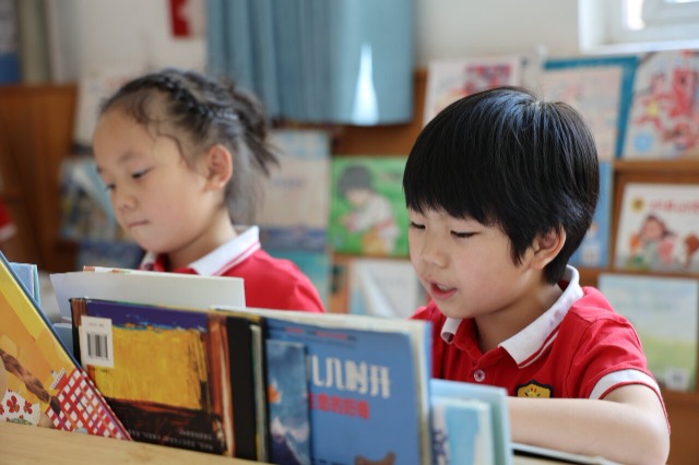 为了让孩子们随处有书看,随处能看书,浙江省诸暨市暨南街道街亭幼儿园对阅读区域进行了改造,园所大厅、走廊、通道的墙面、班级等区域都摆放着各类绘本,供孩子们阅读。现在,在该园随处可“遇见”孩子们阅读的身影。(中国教育报-中国教育新闻网 通讯员 陈霞芳 摄)