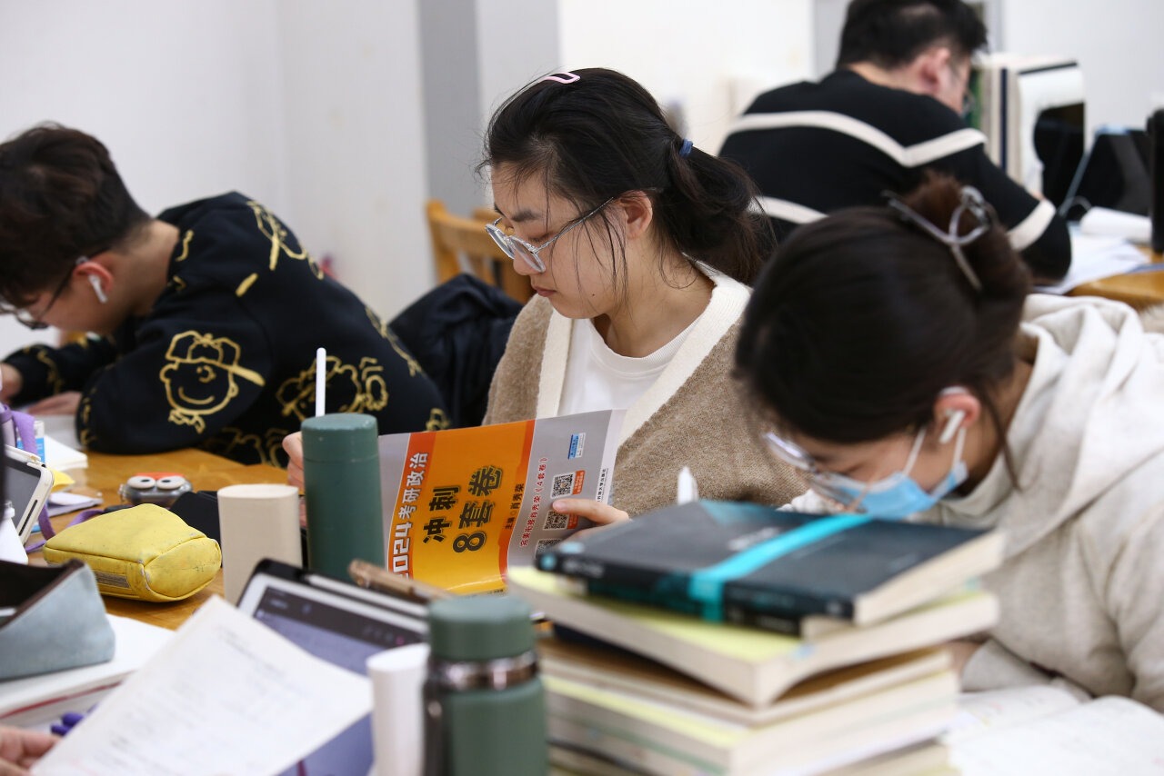 2024年全国硕士研究生招生考试临近,12月10日,在济南大学图书馆,准备考研的学生忙着看书学习,抓紧时间复习备考,做最后的冲刺。(中国教育报-中国教育新闻网 通讯员 郝鑫城 摄)