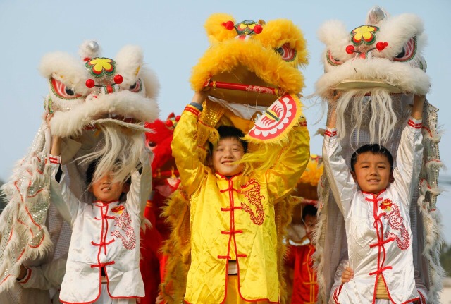 学生们正在训练舞狮。通讯员 张文馨 刘艺 摄