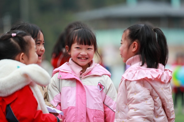 学生在参加期末趣味闯关活动。 通讯员 罗京来 摄