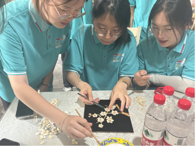 7月14—19日,齐鲁工业大学(山东省科学院)外国语学院(国际教育学院)“用世界声音讲好黄河非遗故事”暑期“三下乡”实践调研团赴聊城阳谷、莘县,德州临邑、齐河多地开展社会实践活动。调研团成员向民间艺人学习柳编、面塑、糖画、剪纸、泥人等非遗技艺,书写书法作品,用实际行动推动黄河非遗文化保护传承弘扬。(中国教育报-中国教育新闻网记者 林焕新)