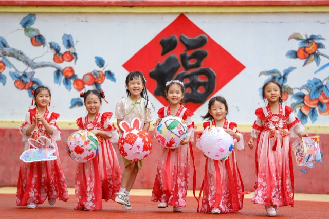小朋友手持自制花灯欢乐游园 张鹰 摄
