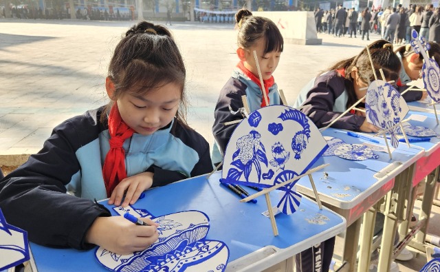连日来,河南滑县锦和街道英民小学开展了“童心绘青花”主题活动,通过生动的课堂、趣味的活动体验,带领孩子们近距离感受非遗文化,在赏青花、绘青花的过程中,增强孩子们对传统文化的热爱和对非遗文化的传承意识。孩子们在教师指导下调配颜色、勾勒线条、填充纹样,绘制出一幅幅生动有趣的青花作品。(中国教育报-中国教育新闻网通讯员 储广军 记者 张利军)